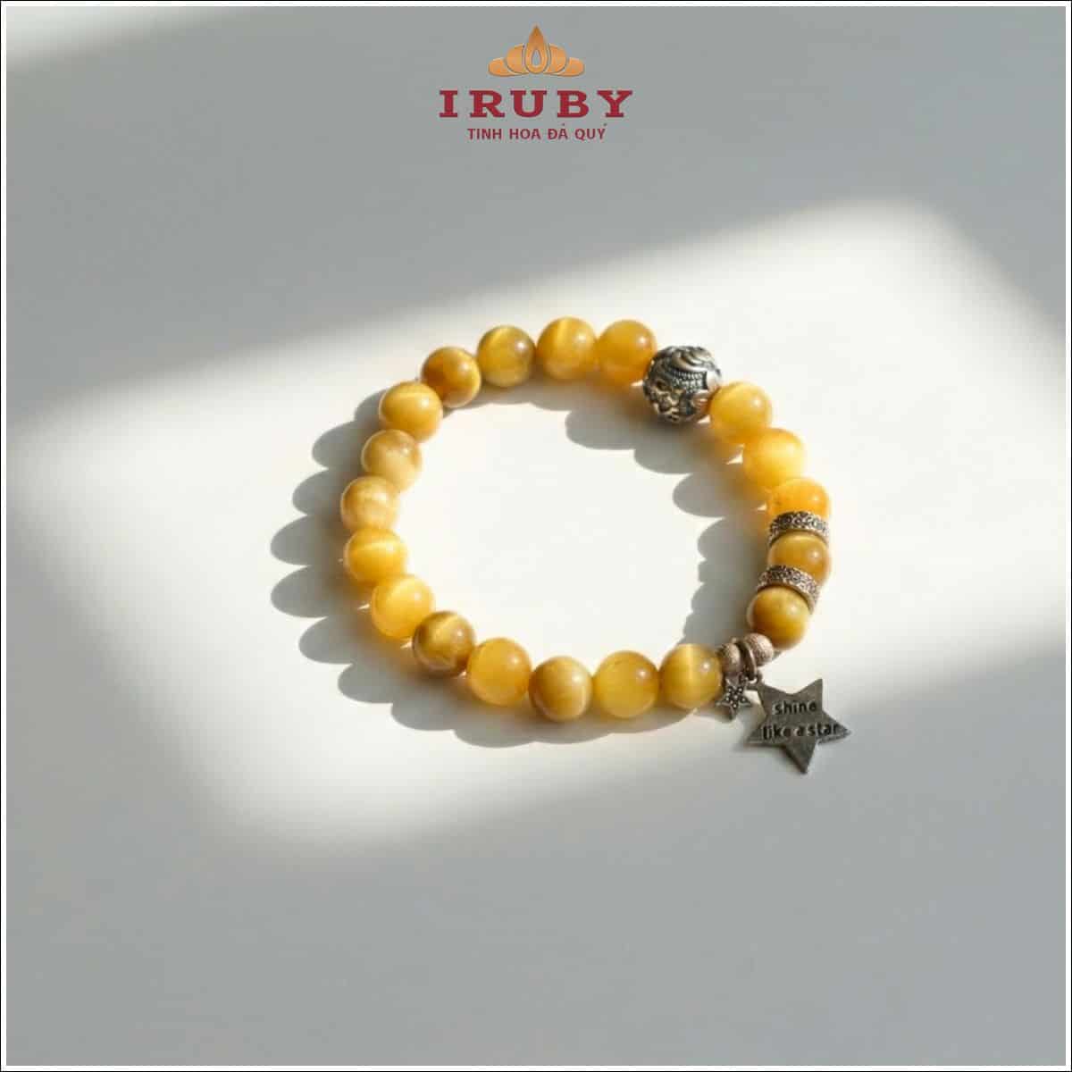 Vòng tay đá mắt hổ là một món trang sức được khá nhiều người ghé thăm IRUBY ưa chuộng bởi khổ vòng vừa vặn, lên tay rất sang. Đá mắt hổ là biểu tượng của sự thịnh vượng, mang ý nghĩa phong thủy về năng lượng mạnh mẽ, quyền lực. Cũng như những loại đá có màu vàng, nâu khác. Vòng tay thạch anh mắt hổ sẽ hợp với những người mệnh Thổ và mệnh Kim.