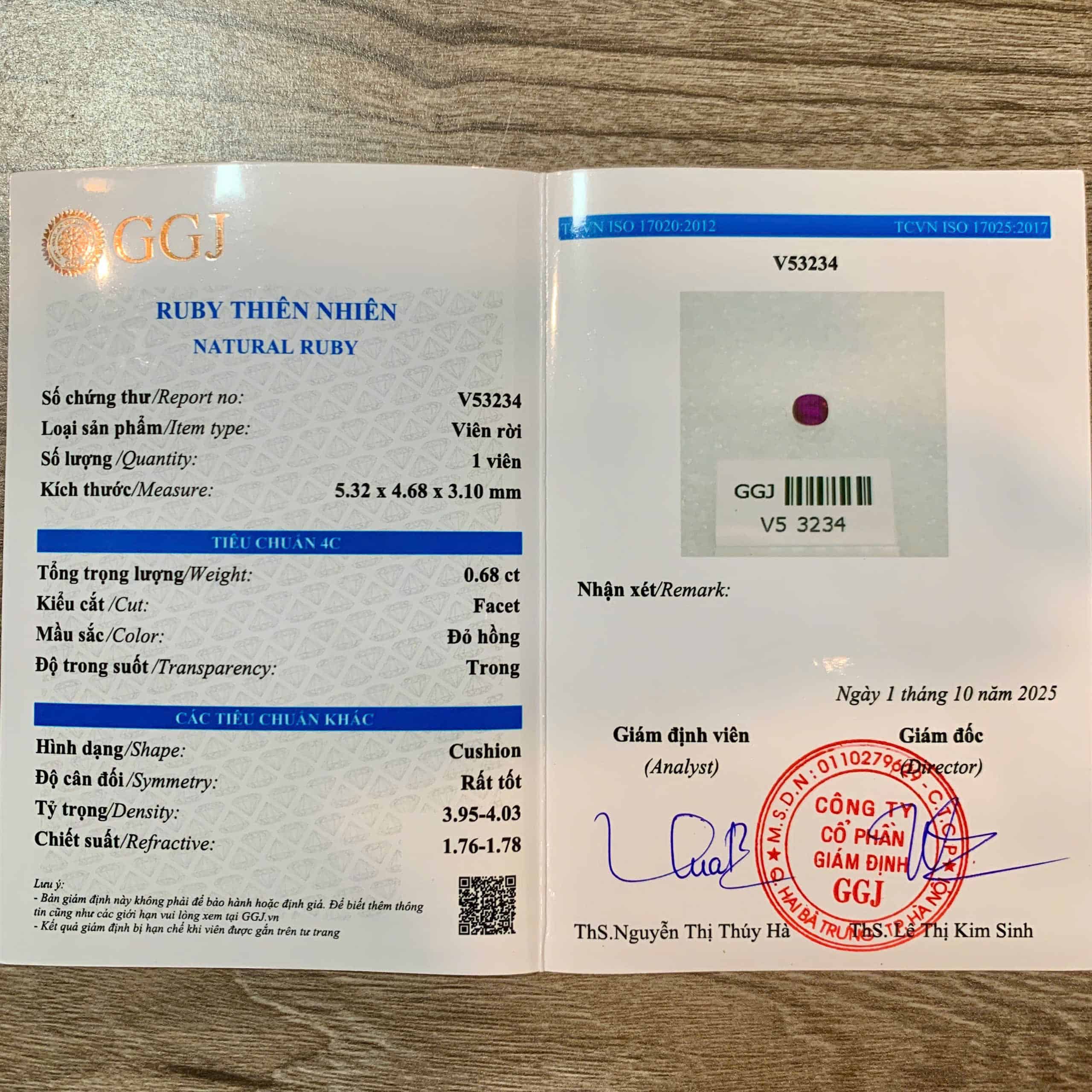 Thông tin cơ bản đá Ruby facet đỏ hồng Lục Yên tự nhiên 100% 0,69ct – IRRF36 2559069