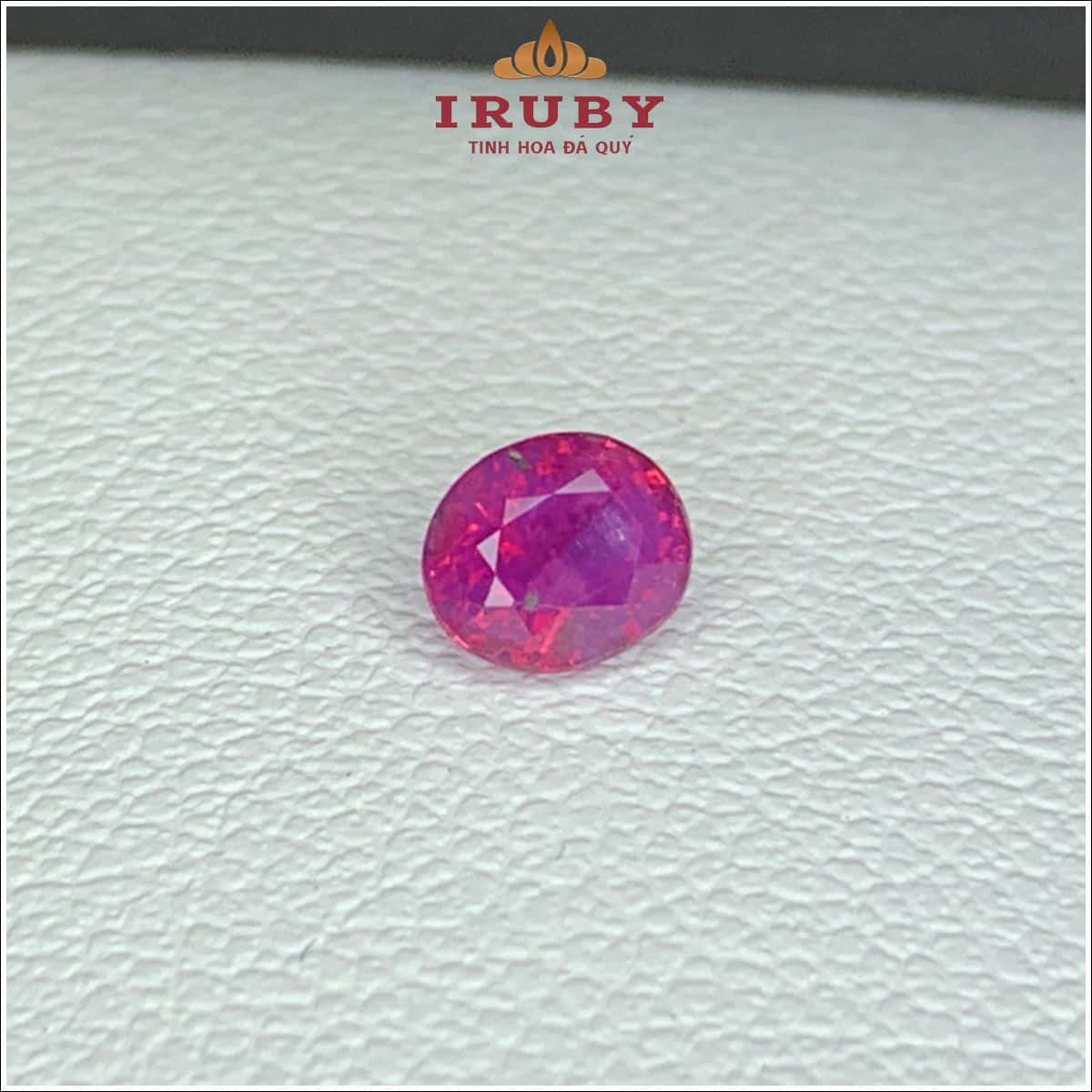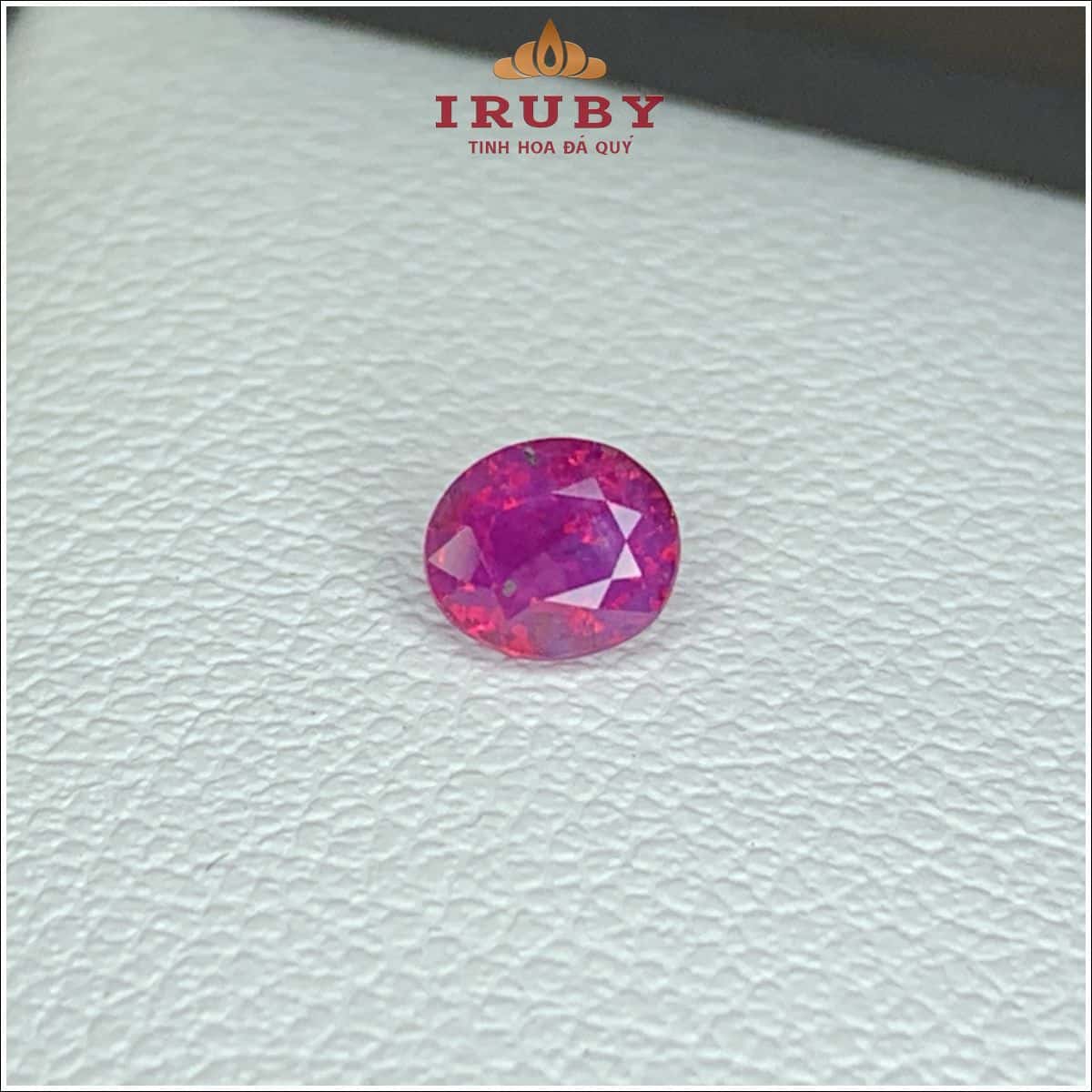 Đá Ruby facet màu đỏ hồng gam màu rất cuốn hút, đan xen giữa hai màu tạo nên vẻ đẹp độc nhất. Trọng lượng 0,45ct với kích thước: 4,5 × 3,9 – 2,8mm cắt form Oval tinh tế. Đá có bao thể tự nhiên đay là đặc trưng của dòng Ruby thiên nhiên, nhưng đảm bảo chiếu tốt. Đá Ruby tự nhiên 100% rất thích hợp lên mẫu trang sức nữ như: Mặt dây chuyền, nhẫn nữ, vòng tay… quý khách có thể tham khảo mẫu nhẫn đẹp nhất từ IRUBY tại đây.