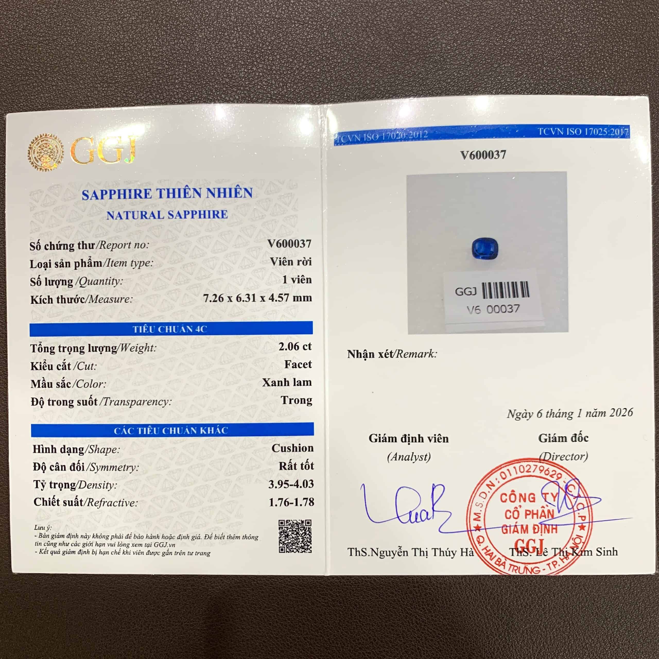 Thông tin cơ bản Đá Sapphire xanh lam hoàng gia tự nhiên 2,06ct – IRBS38 25620206