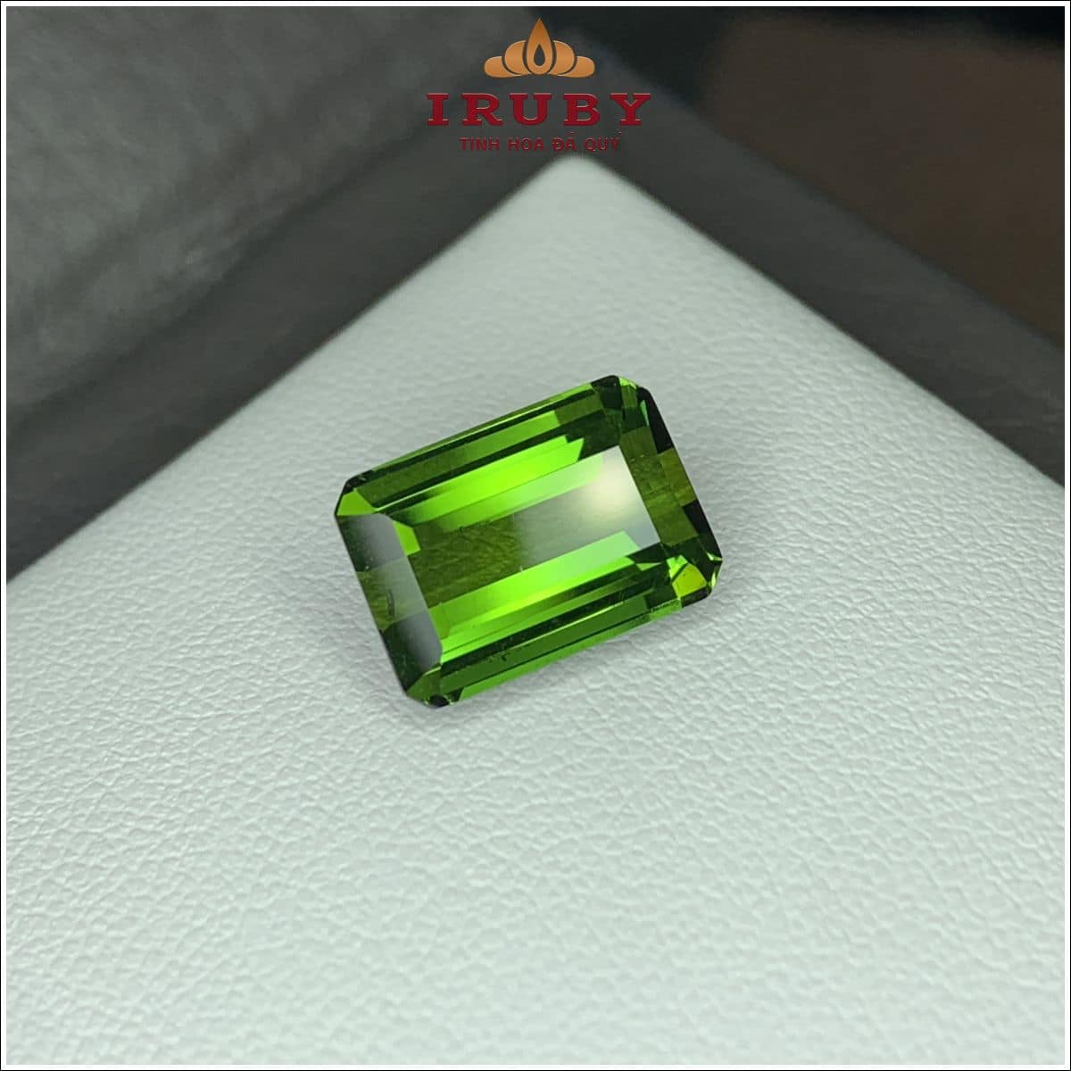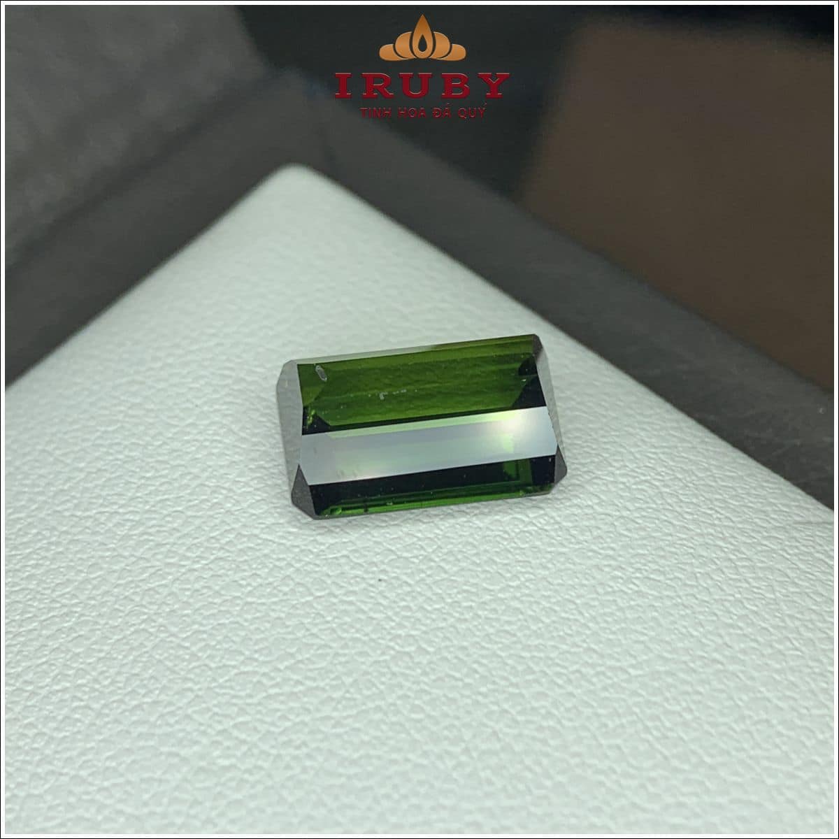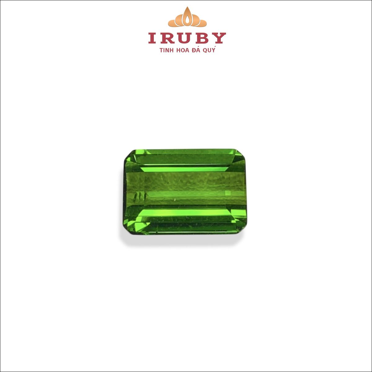 Viên Tourmaline xanh lục tự nhiên trọng lượng 6,20ct, kích thước 12,6 × 8,9 × 5,7 mm. Cắt emerald-facet chuẩn với các mặt cắt thẳng, sắc nét, giúp tôn vẻ đẹp tinh khiết của viên đá. Độ lành sạch cao, màu xanh rất thích hợp lên nhẫn nam bản lớn, nhẫn unisex cao cấp hoặc mặt dây chuyền thiết kế hiện đại.