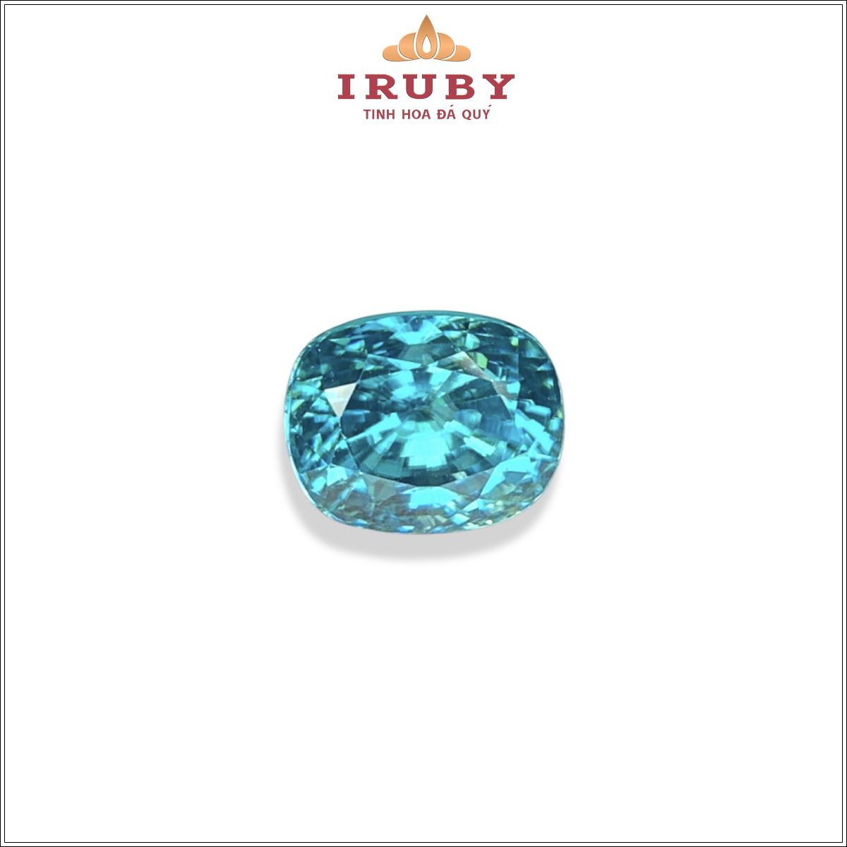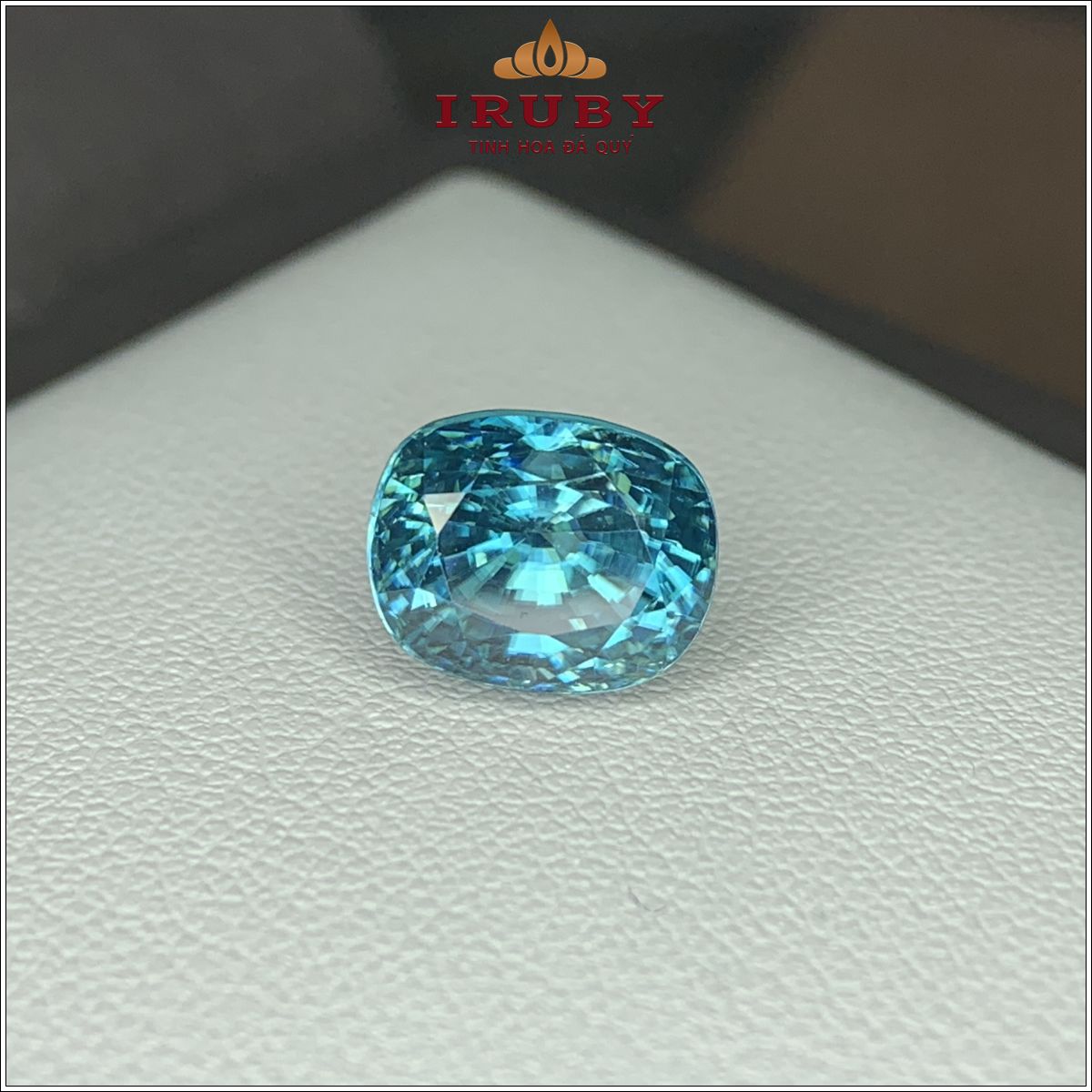 Viên Zircon xanh biển mang sắc xanh đại dương trong trẻo, ánh lửa mạnh và hiệu ứng tán sắc rực rỡ. Giác cắt cushion tinh xảo giúp viên đá bắt sáng đẹp, tạo chiều sâu cuốn hút. Zircon xanh biểu trưng cho trí tuệ, sự bình an và nguồn năng lượng tích cực.