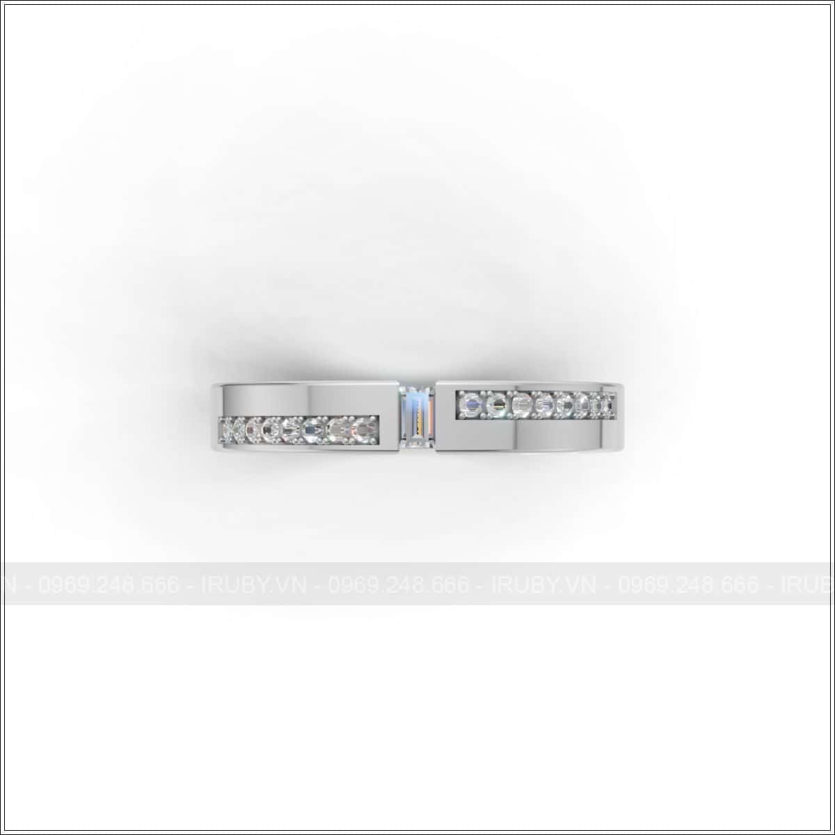 Bạn có thể đặt chế tác cặp nhẫn cưới phẳng đính đá Baguette rất tinh tế đẹp – IRNC047 trực tiếp tại hệ thống của IRUBY hoặc tư vấn từ xa: