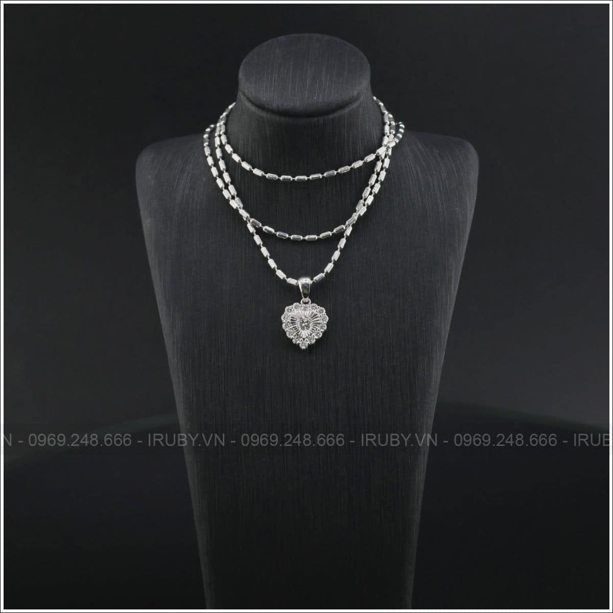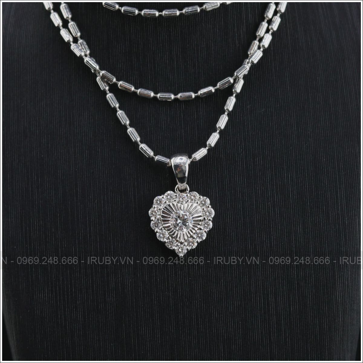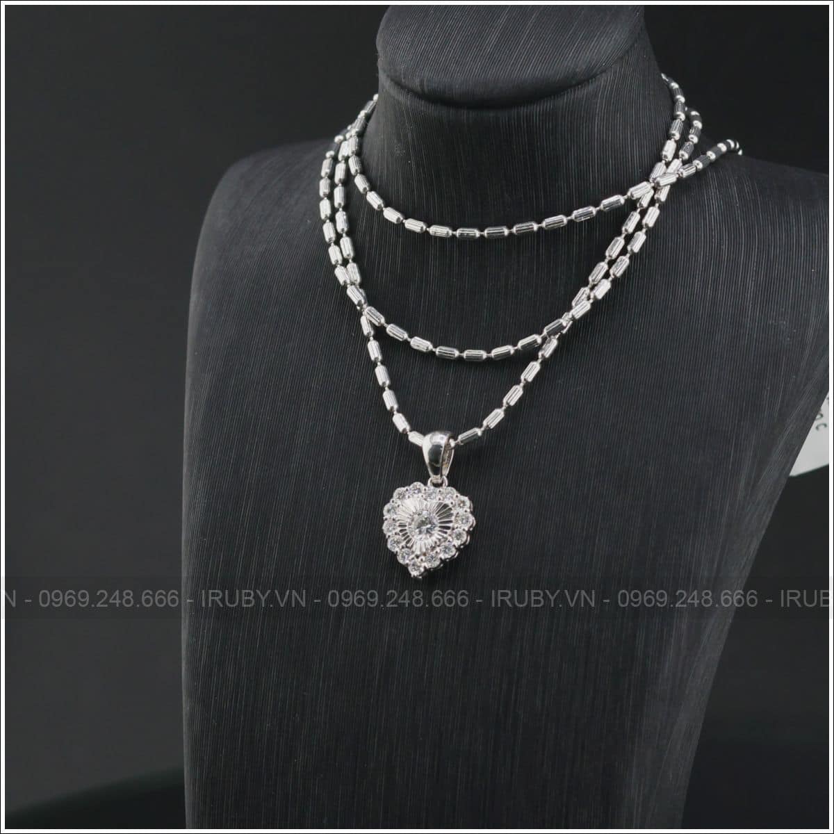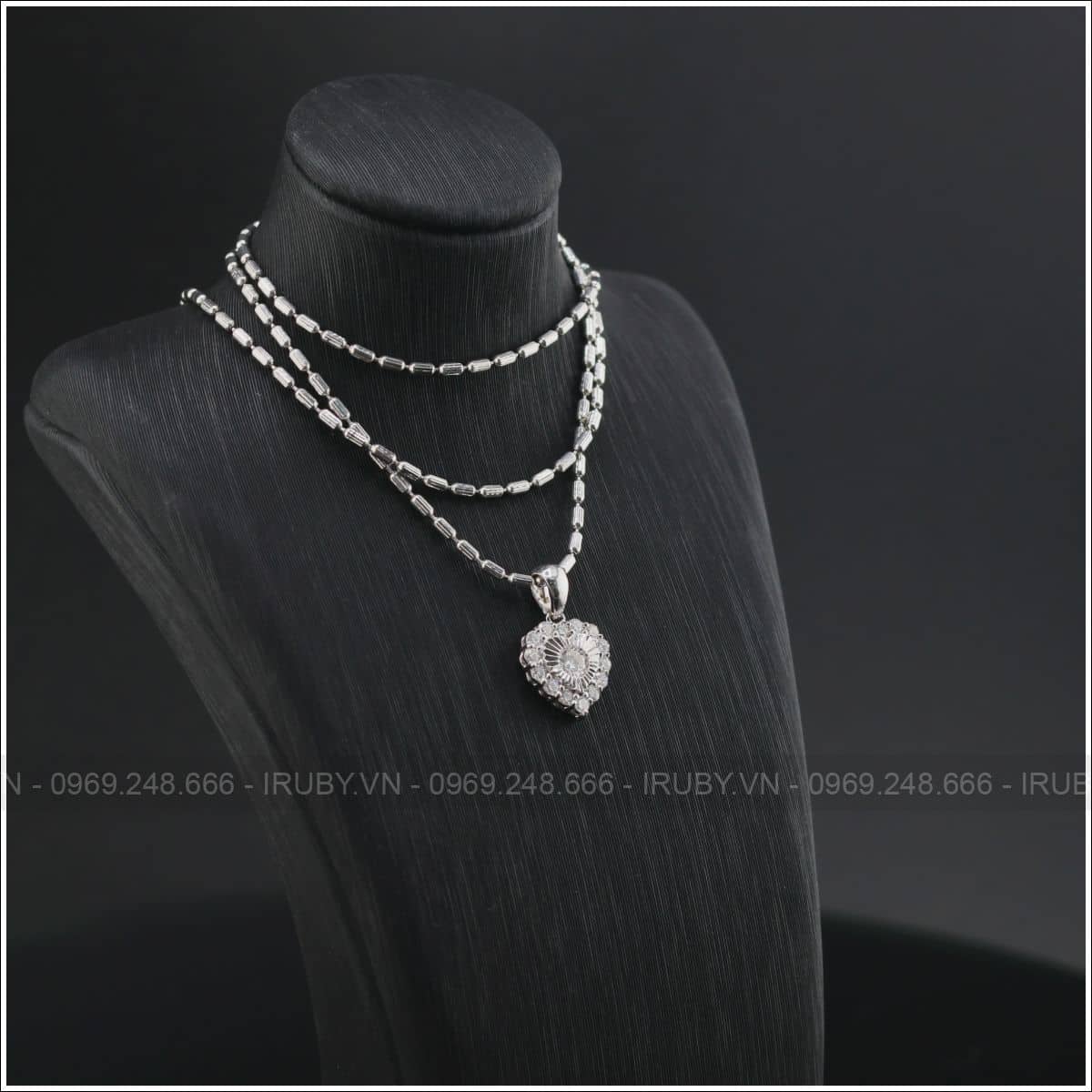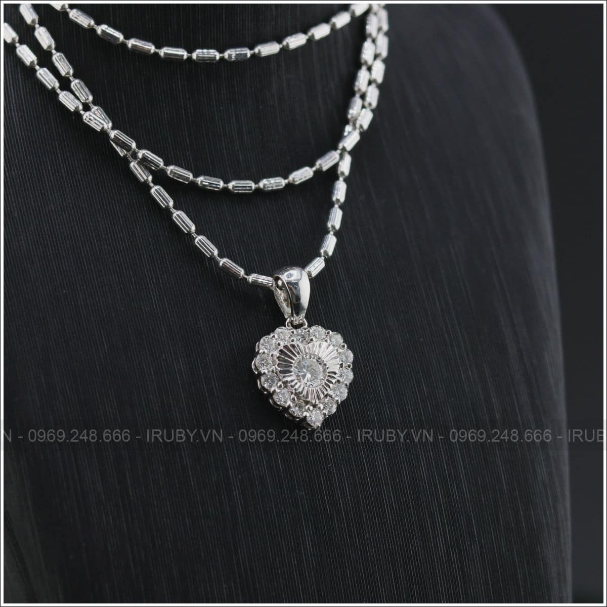 Giá mặt dây chuyền kim cương trái tim rực rỡ vàng trắng 18K – IRMDKC 026 bao nhiêu?