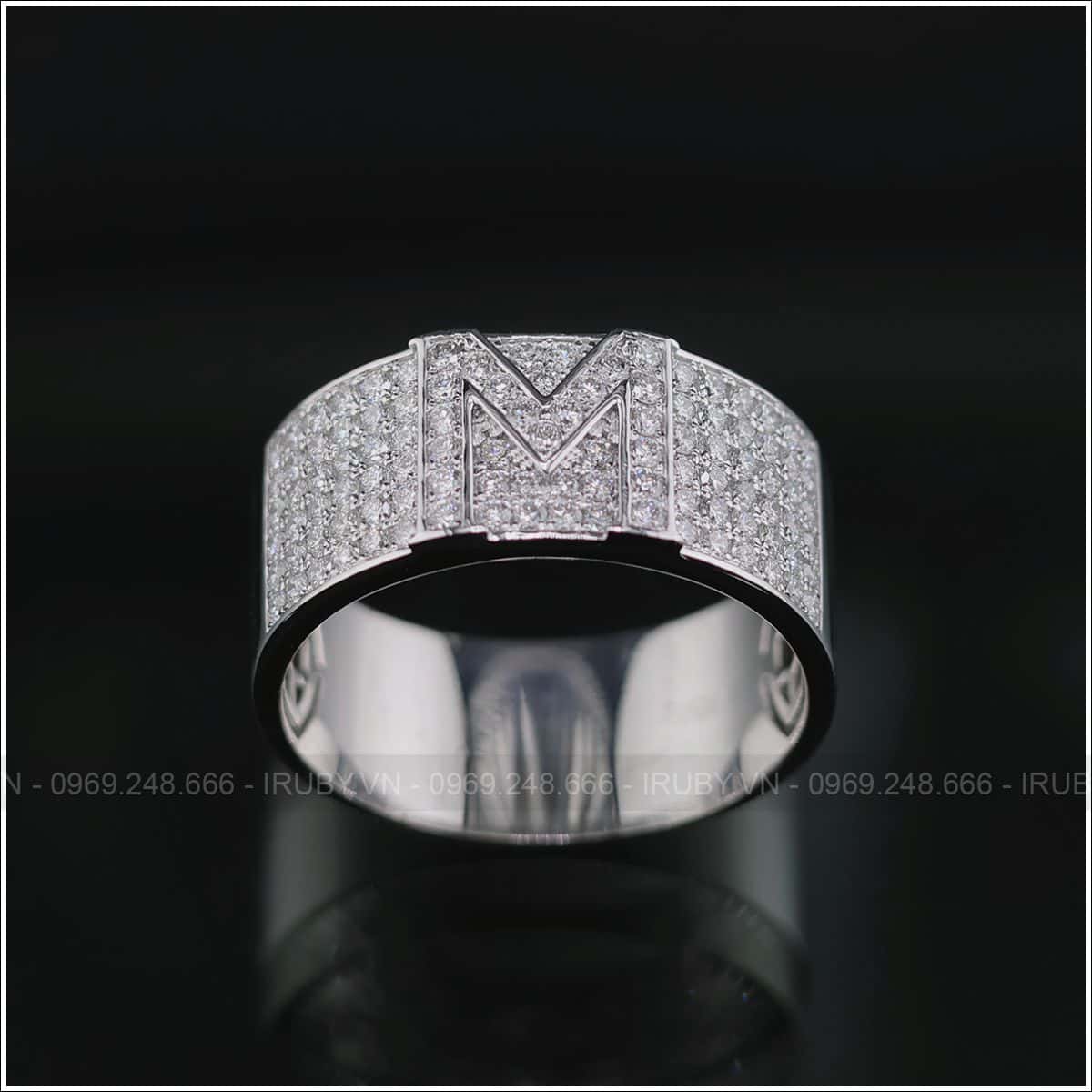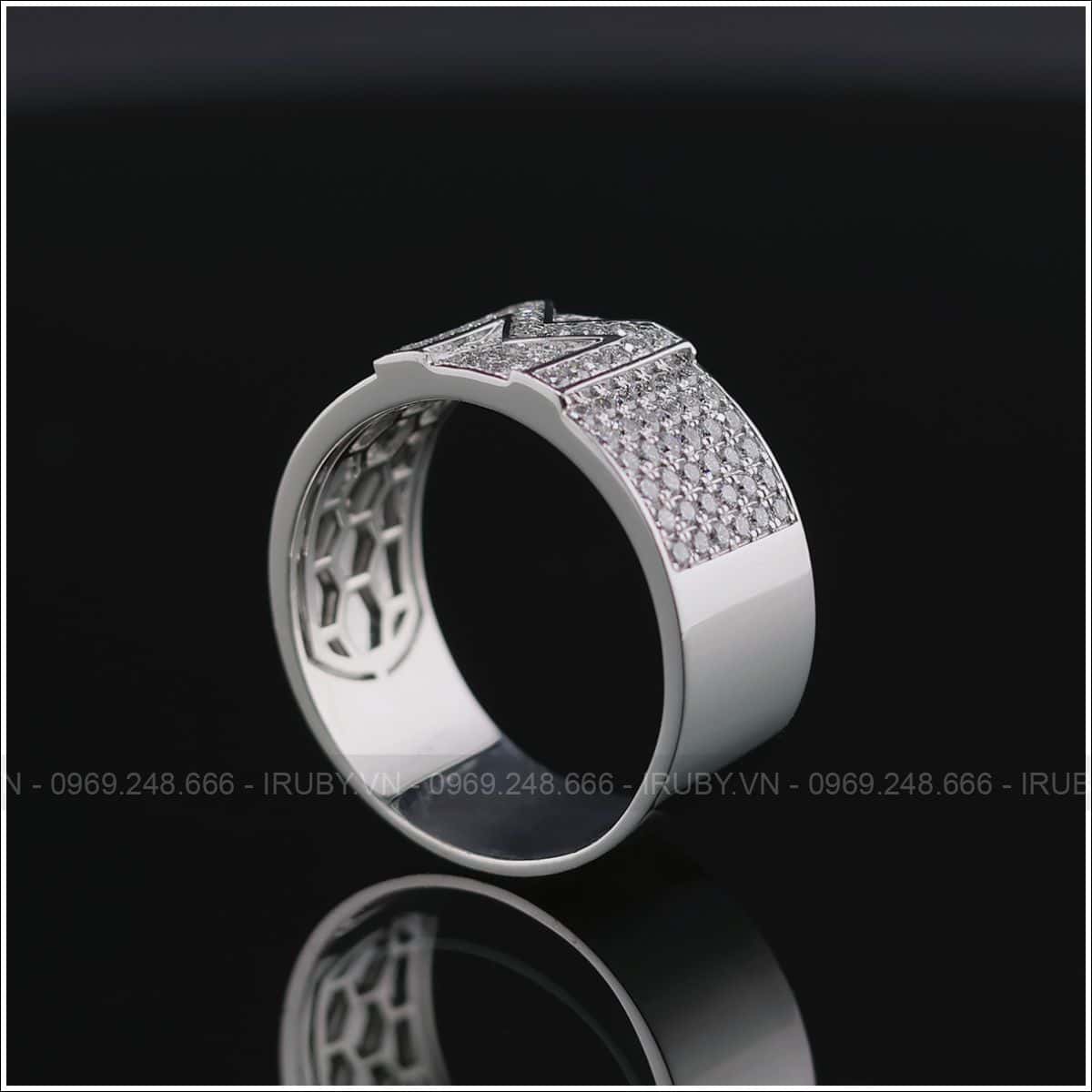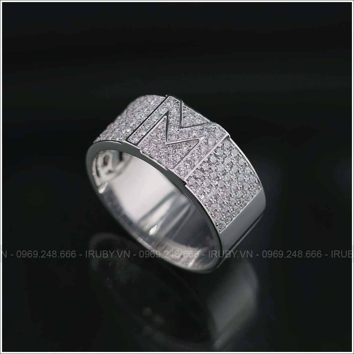 Nhẫn nam kim cương thiết kế hiện đại, cách điệu với chữ M chế tác tỉ mỉ tinh xảo đến từng chi tiết nhỏ. Mẫu nhẫn không đơn thuần là khẳng định gu thời trang riêng, mà còn là tuyên ngon của người đàn ông bản lĩnh.