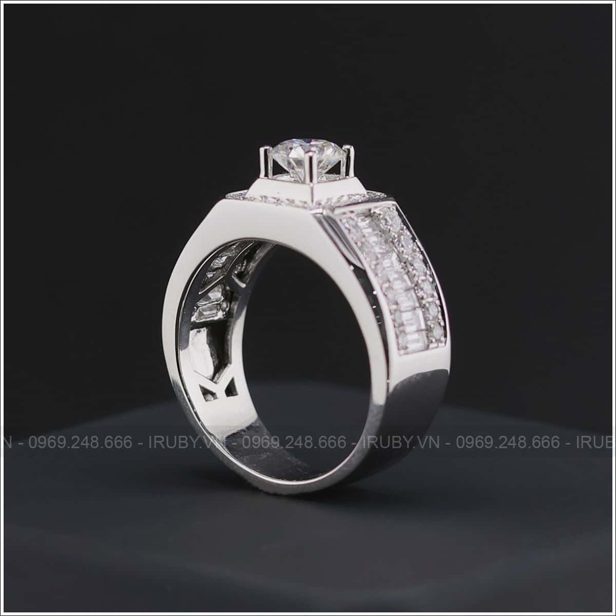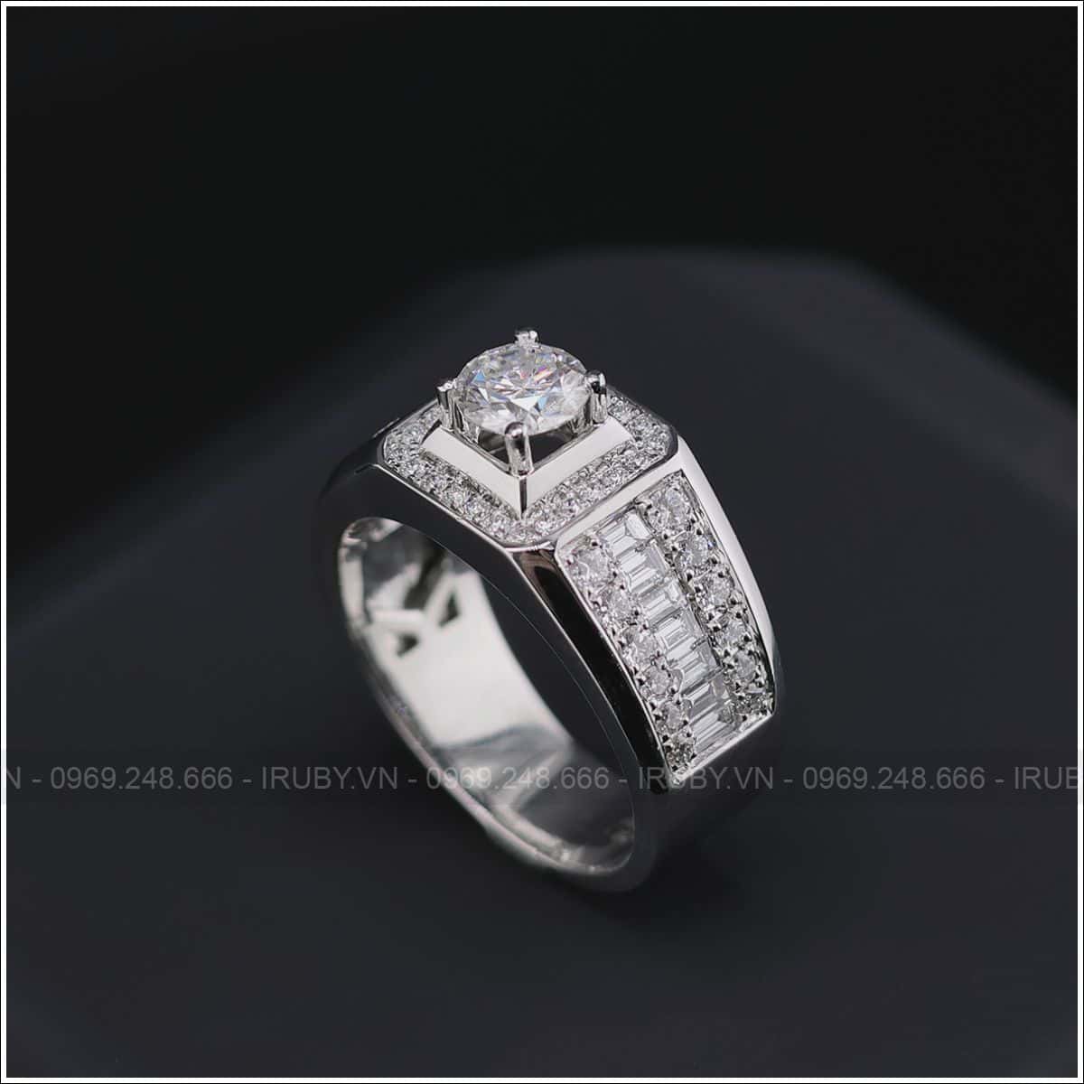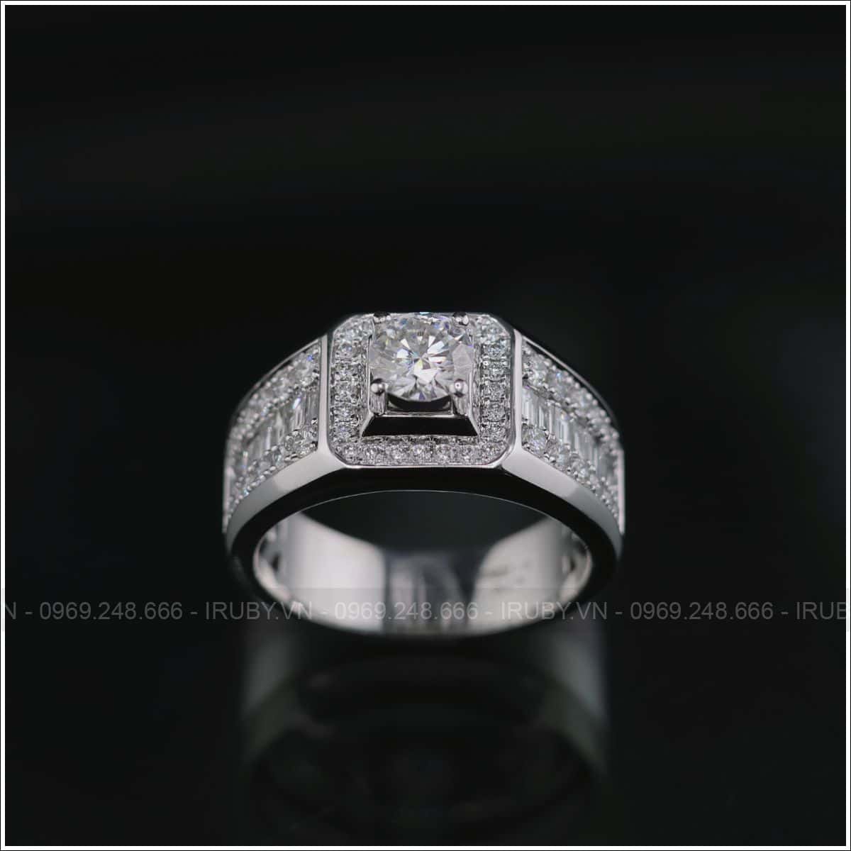 Tư vấn và thiết kế miễn phí 100%, đặt hàng theo mẫu khi quý khách mua Nhẫn nam KC Halo vàng trắng 18K – IRNAKC 027 tại IRUBY