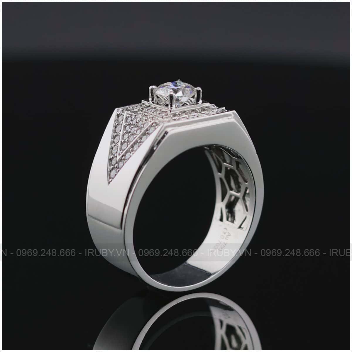Tư vấn và thiết kế miễn phí 100%, đặt hàng theo mẫu khi quý khách mua Nhẫn nam KC vàng trắng 18K – IRNAKC 030 tại IRUBY