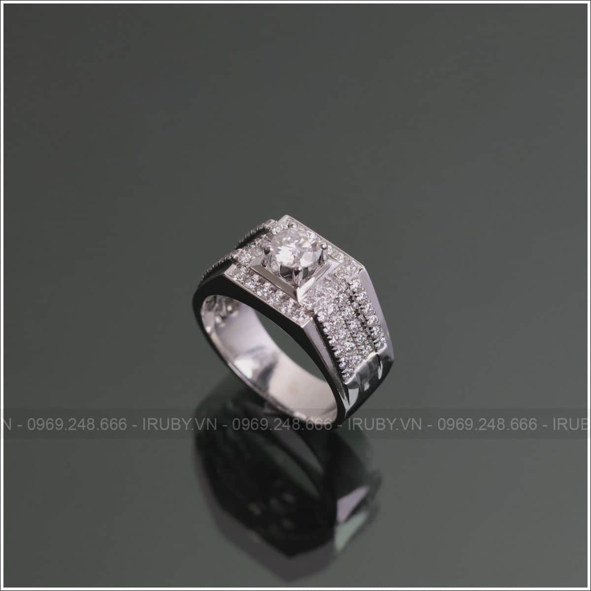 Tư vấn và thiết kế miễn phí 100%, đặt hàng theo mẫu khi quý khách mua Nhẫn nam Kim Cương thiên nhiên vàng trắng 18k – IRNAKC 019 tại IRUBY
