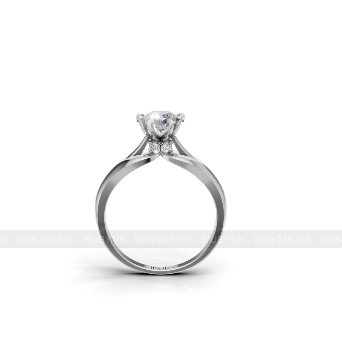 Điểm đặc biệt của IRNUKC128 nằm ở phần thân nhẫn giao nhau mềm mại phía dưới bệ đá, tạo nên đường cong tinh tế như hai dòng chảy hội tụ. Ngay vị trí giao thoa được đính các viên kim tấm nhỏ, tăng chiều sâu ánh sáng và tạo cảm giác thiết kế có lớp lang, không đơn điệu. Thân nhẫn bo tròn ôm tay, bản vừa phải giúp cân bằng giữa tính thẩm mỹ và sự thoải mái khi sử dụng lâu dài. Sản phẩm có thể chế tác bằng vàng trắng, vàng vàng, vàng hồng hoặc bạch kim theo yêu cầu.