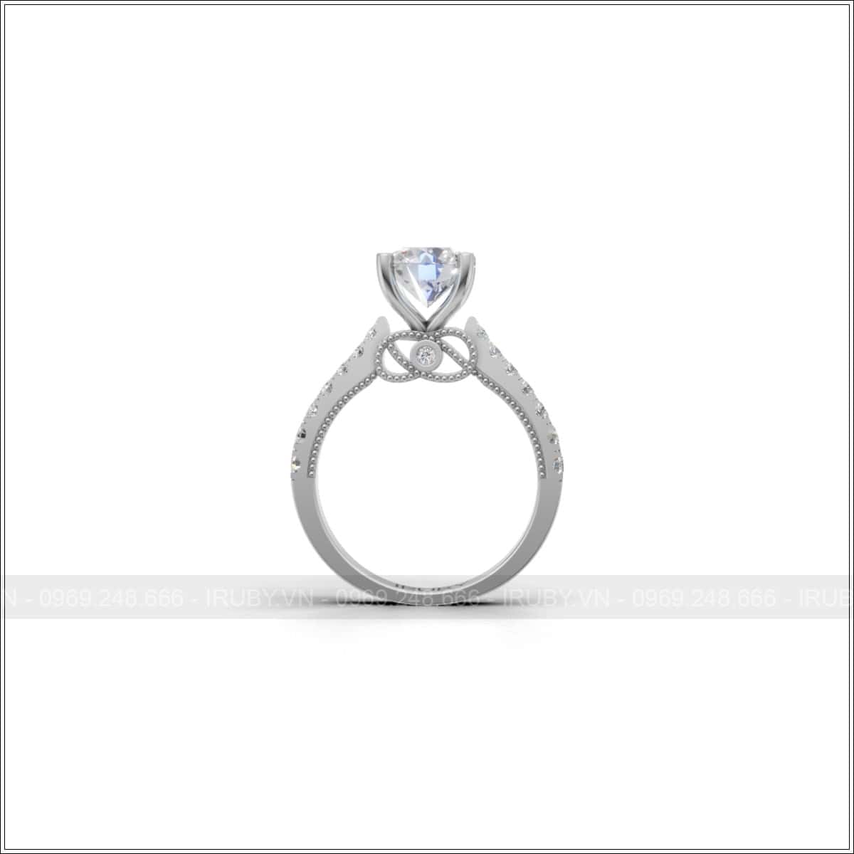 Thiết kế thân nhẫn thanh lịch, tỷ lệ hài hòa giữa bản nhẫn và viên chủ, mang lại cảm giác đeo cân đối và nổi bật trên tay. Hông nhẫn hình vô cực mang ý nghĩa tình yêu vĩnh cửu, không có điểm bắt đầu và kết thúc. Sự kết hợp giữa nét hiện đại và cổ điển tạo nên vẻ đẹp độc đáo, đẳng cấp. Mẫu nhẫn phù hợp làm nhẫn cầu hôn, nhẫn cưới hoặc món quà đánh dấu tình yêu.