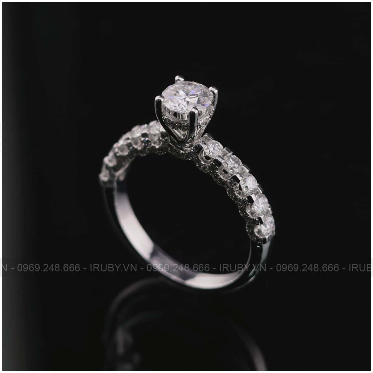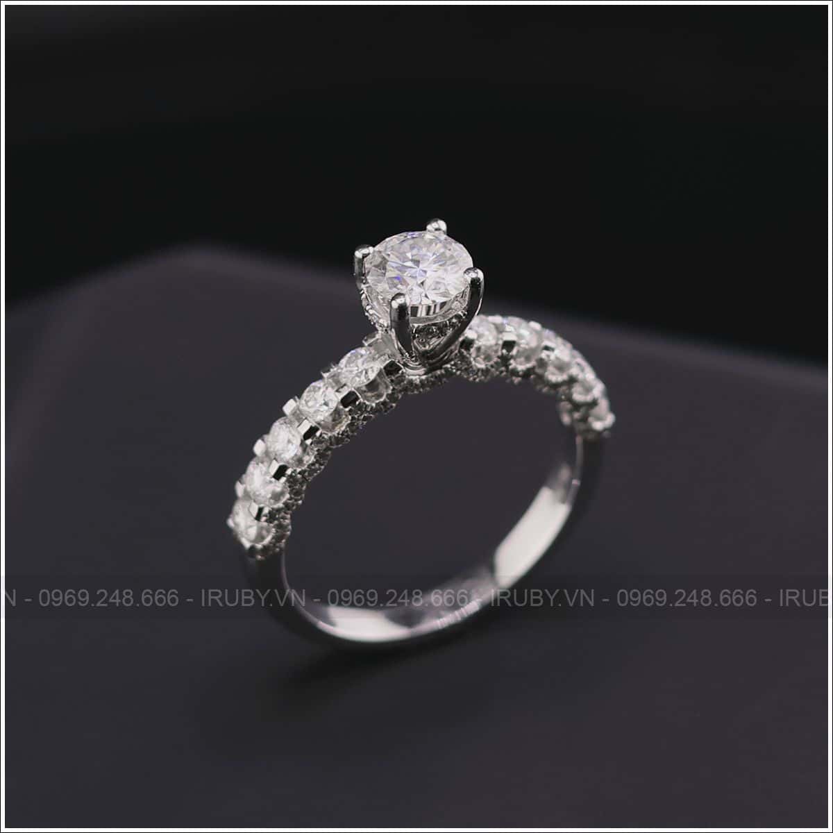 Nhẫn nữ kim cương là mẫu trang sức tinh tế và thanh lịch, được chế tác từ vàng 18K sang trọng. Viên kim cương chủ hình tròn cắt giác Brilliant Cut đặt ở vị trí trung tâm, tỏa sáng rực rỡ từ mọi góc nhìn. Thân nhẫn được đính 88 viên kim cương tấm kích thước 0.9–2.3mm tinh xảo. Thiết kế dáng thanh nhã, tôn lên vẻ đẹp nữ tính và sang trọng của người đeo. Rất thích hợp để làm nhẫn đính hôn, nhẫn cầu hôn hoặc quà tặng ý nghĩa cho những dịp đặc biệt. Mẫu nhẫn có thể xuất hiện với nhiều phiên bản với vàng hồng, bạc hay thay thế đá chủ là: Moissanite, Cz, đá quý…