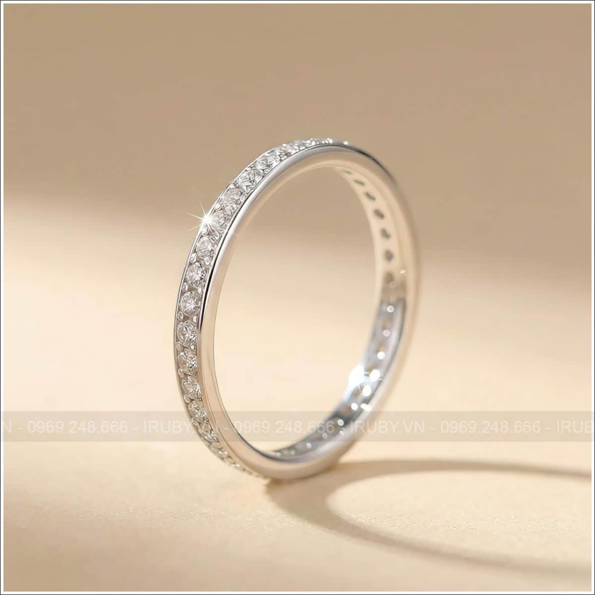 Tư vấn và thiết kế miễn phí 100%, đặt hàng theo mẫu khi quý khách mua Nhẫn nữ bạc xi kim Moissanite Eternity Band – NNB4 261250 tại IRUBY
