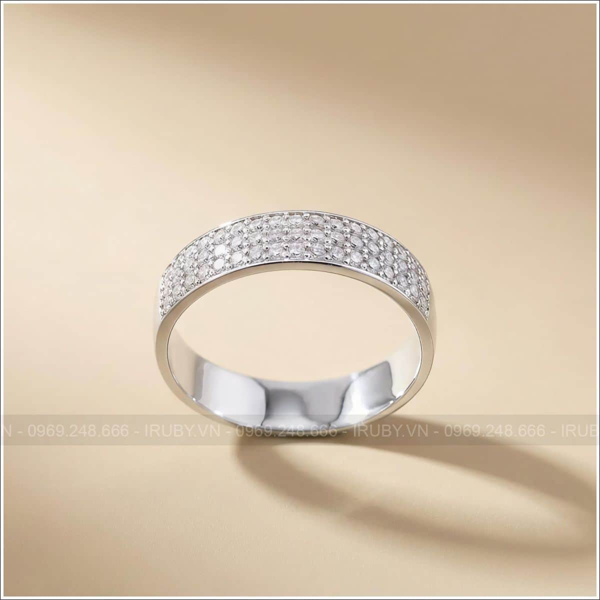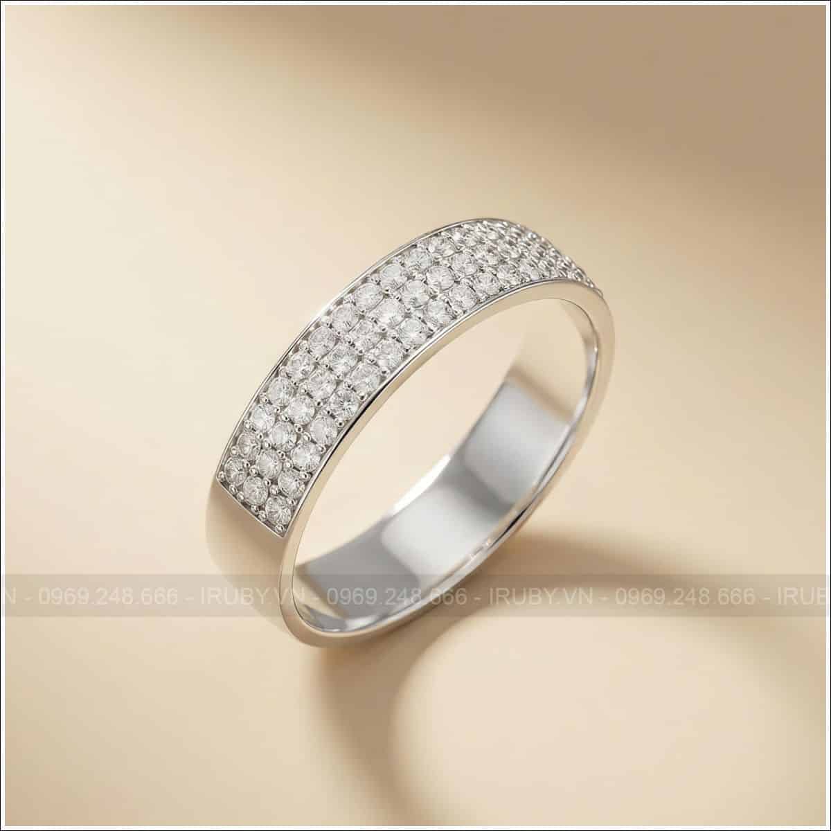Thiết kế độc đáo với ba hàng moissanite xếp đều, tỏa sáng lấp lánh như dải ngân hà thu nhỏ. Mẫu nhẫn bản to chắc chắn với chất liệu bạc xi kim thêm phần sang trọng. Thiết kế bản vừa phải vừa thanh lịch vừa nổi bật, mẫu nhẫn sẽ lấp lánh hơn nếu có thể sử dụng đá là: Kim cương, đá quý hay Cz…Đây là chiếc nhẫn dành cho những cô nàng yêu thích sự lung linh nhưng vẫn muốn giữ nét sang trọng, tinh tế. Dễ dàng mix cùng đồng hồ, vòng tay hay xếp chồng với những chiếc nhẫn khác để tạo style riêng của bạn.