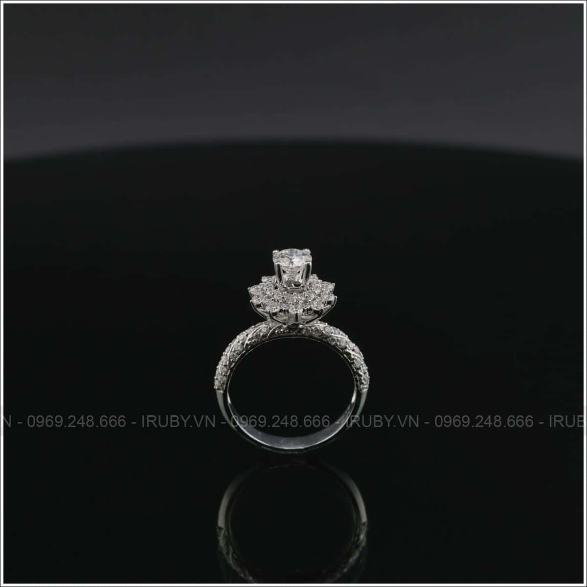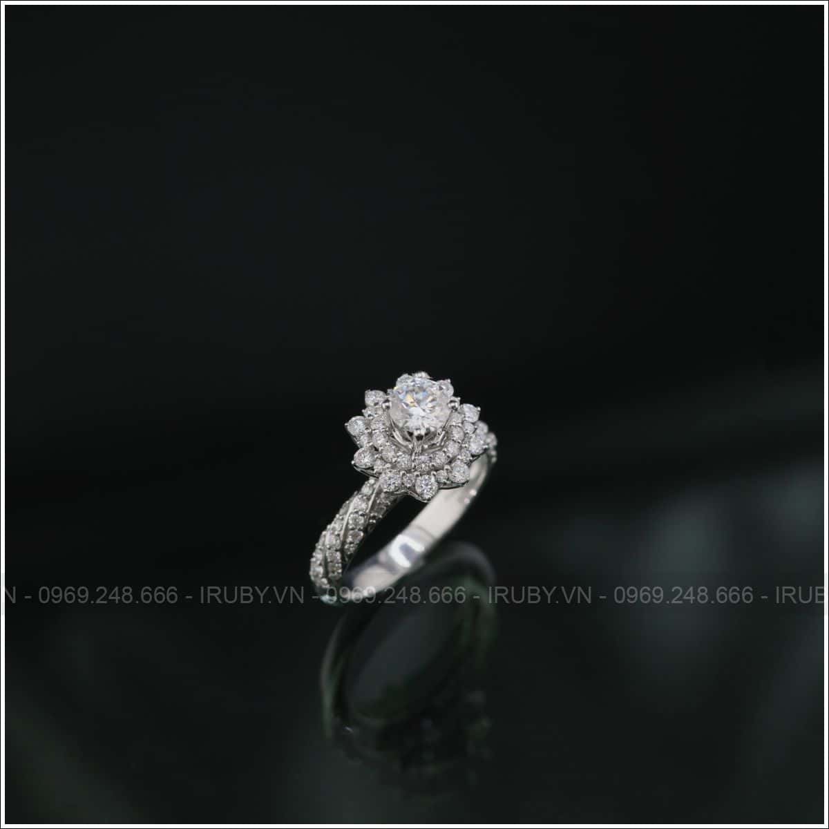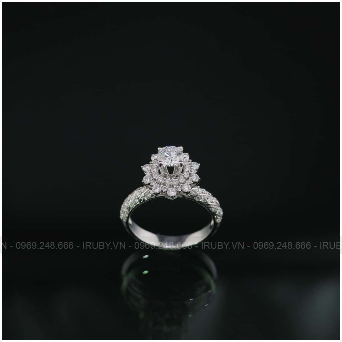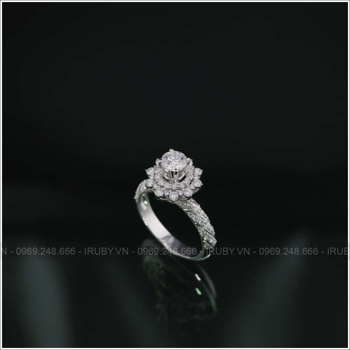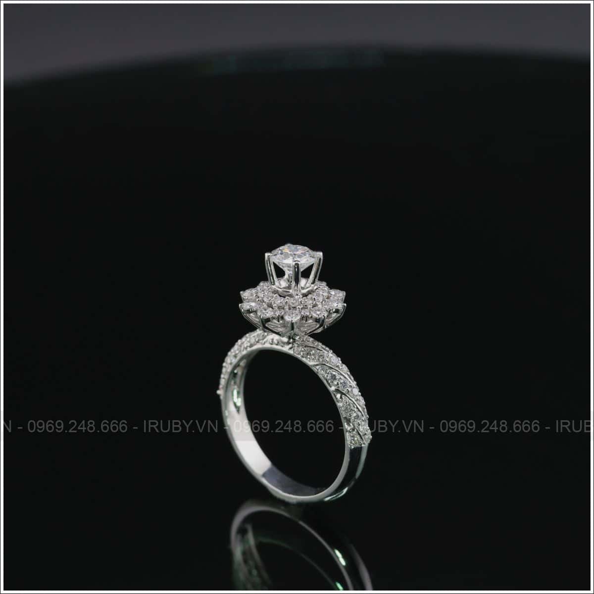 Mãu nhẫn nữ được thiết kế như bông hoa đang nở rộ với viên đá chủ ở giữa xung quanh là kim tấm. Chiếc nhẫn này vô cùng tinh xảo và đẳng cấp, tổng thể chiếc nhẫn không quá phô. Dáng nhẫn cao tôn lên vẻ đẹp của người đeo mỗi khi xuất hiện.